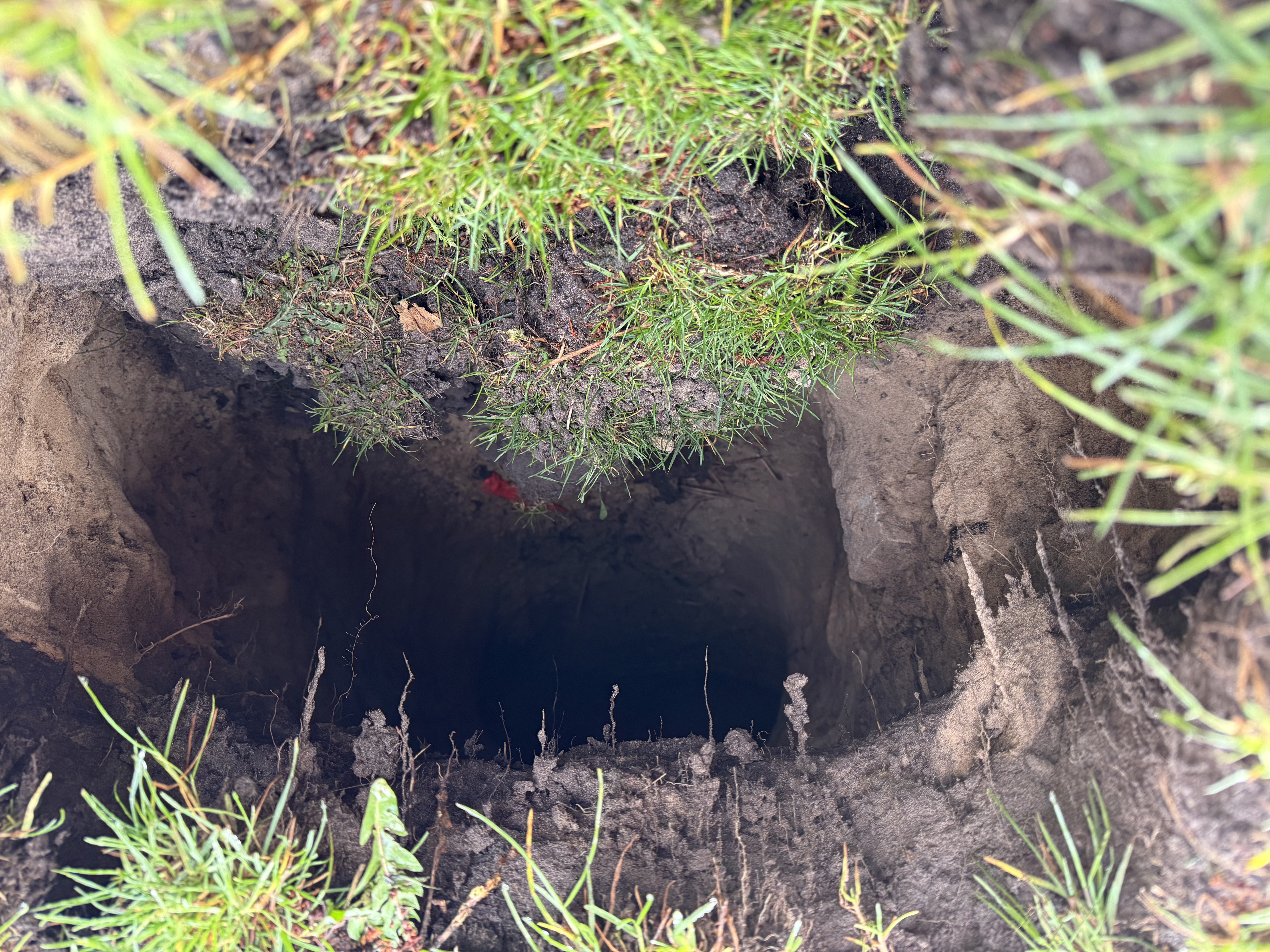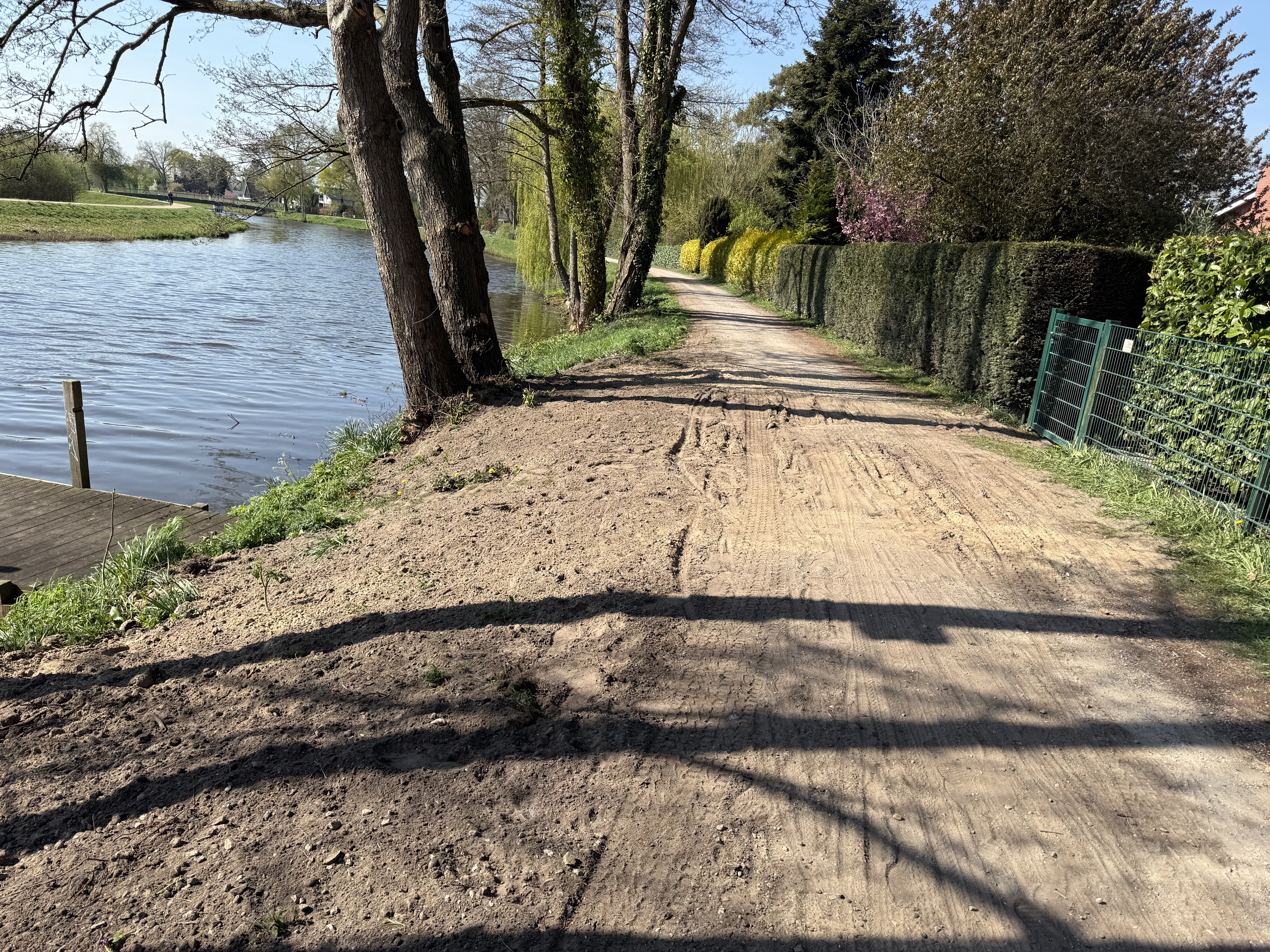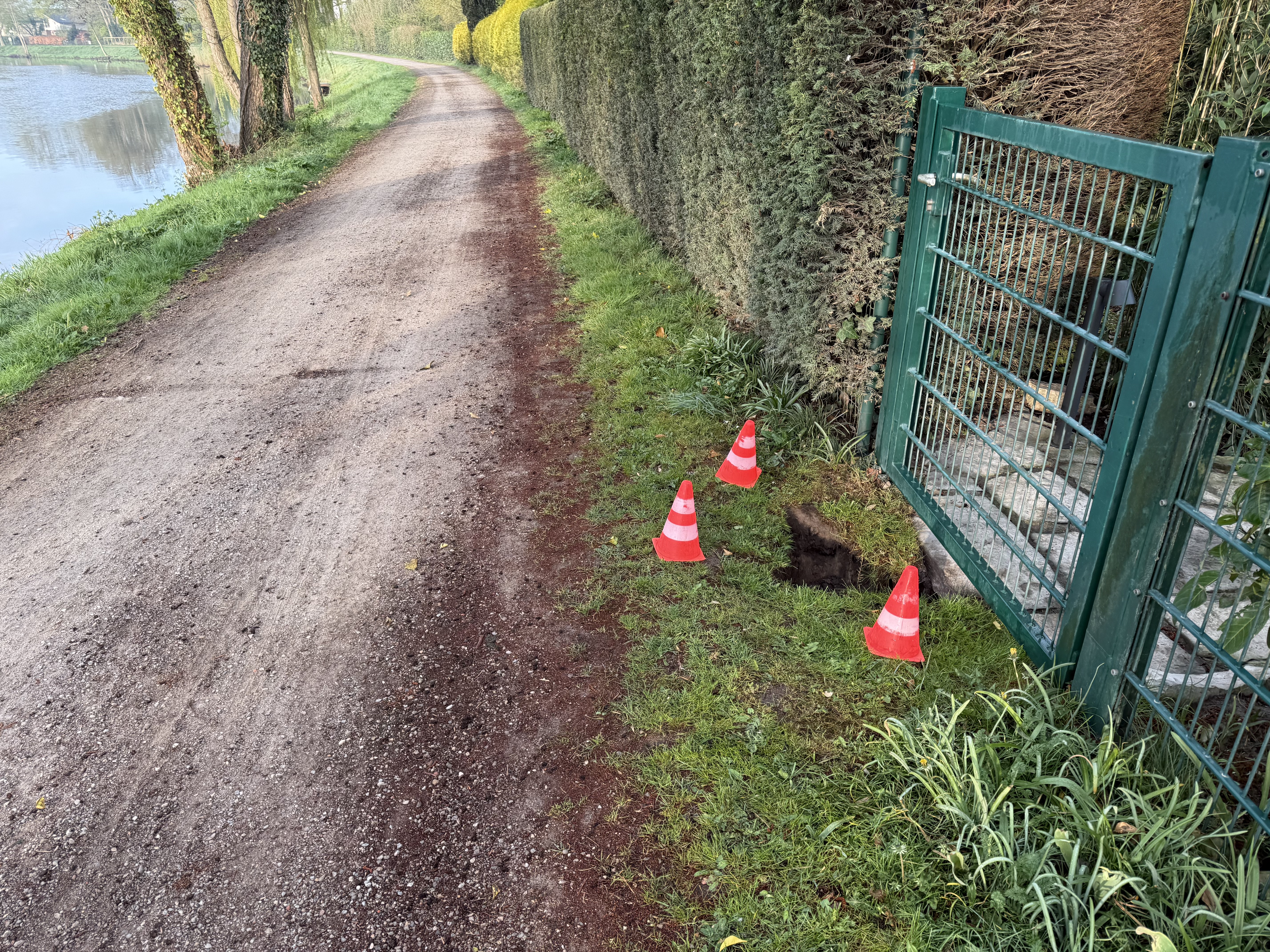 Im Auftrag des NLWKN und in Abstimmung mit der jeweiligen unteren Naturschutzbehörde verfüllt die Hunte-Wasseracht durch Bioturbation entstandene Hohlräume von Nutrias und Bibern.