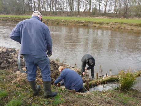 Wechselseitige Mahd durch „beobachtende“ Unterhaltung in der Lethe. Durch die abschnittsweise Stromstrichmahd werden mäandrierende Bereiche im Gewässer mit entsprechender Abflussleistung geschaffen ohne unnötige Eingriffe in das gesamte Gewässerregime.